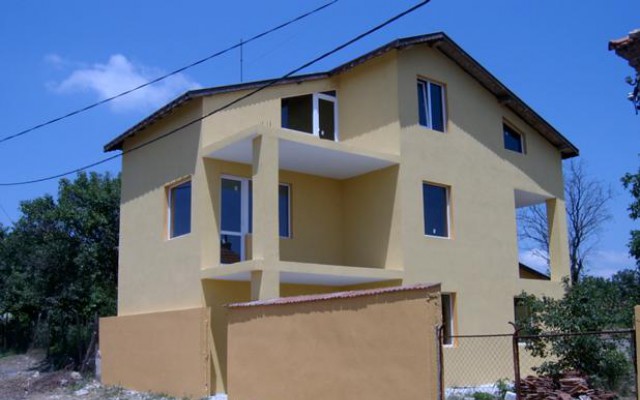 Предлагаме Ви нова, солидна къща на 3 етажа в груб строеж,напълно завършена отвън. Разположена е в село Горен Близнак, само на няколко минути от Варна(17км) и Камчия(3км). Дворното място е 700кв. м. , жилищна площ 240кв. м. Има налични ток, вода, телефон, септична яма, външна зидана ограда. Разпределение на помещенията: Първи етаж-просторен дневен тракт , една спалня и баня с тоалет. Втори етаж-две спални с баня и тоалет. От двете спални има достъп до слънчева тераса с панорамна гледка. Трети етаж представлява еднo голямo помещение, с възможност за преграждане,по ваше желание. Има също голяма слънчева тераса с превъзходна морска и горска панорама. Имотът е разположен в единия край на парцела от страната на улицата и има достатъчно пространство за градина, басейн, място за паркиране или гараж.