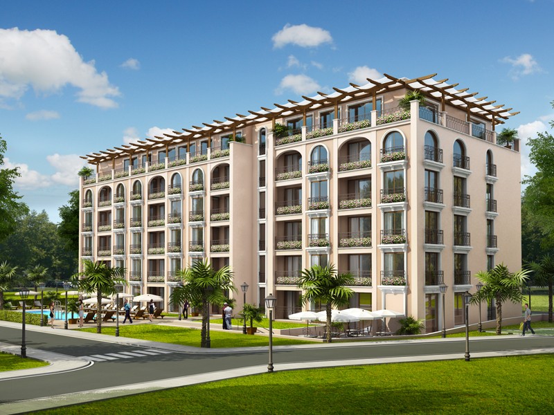 Комплексът представлява шестетажна сграда, и ще се състои от 112 апартамента - студиа и апартаменти с една спалня.Обектите, които сме построили, ние изграждаме и изграждат, са винаги на най-високо европейско качество, внимателно обмислен план, най-удобен и с добра локация.Горните етажи откриват невероятна панорама директно на плажа. Проектът е разработен в класически средиземноморски стил - в пастелни цветове, с красиви орнаменти по фасадата, с уютна тераса, дървени перголи на най-горния етаж, които ще осигуряват сянка през горещите летни дни.А шест-етажна сграда ще бъде изградена в съответствие с най-високите европейски стандарти.Външни и вътрешни стени ще бъдат изградени от тухли.В конструкцията, са използвани следните материали: червена тухла гръцки или български език; Качествена външна изолация; Вътрешни стени - тухла; Парапети от ковано желязо. Интериор Апартамент клас "лукс" са комфортно обзаведени.Степента на завършеност - "до ключ", както следва: